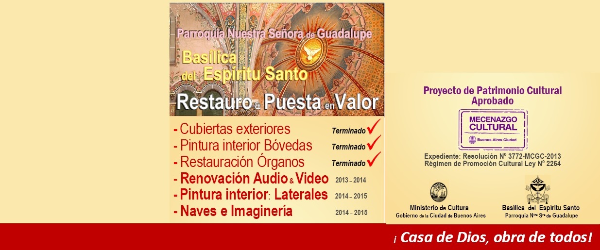 Medrano y Mansilla – Caba – Arg,/ Secret. Parroquial: L a V 11 a 12.30 y 14 a 17.30 / Sab. de 8.30 a 11.30 Tel. 4824 8852